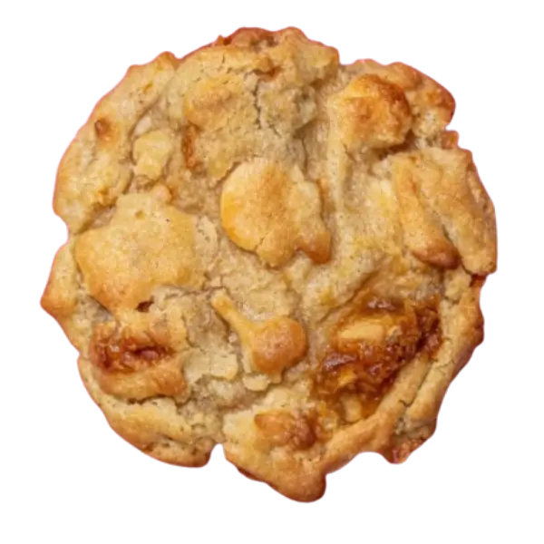 Cookie de mantequilla con chocolate blanco y macadamias caramelizadas.
